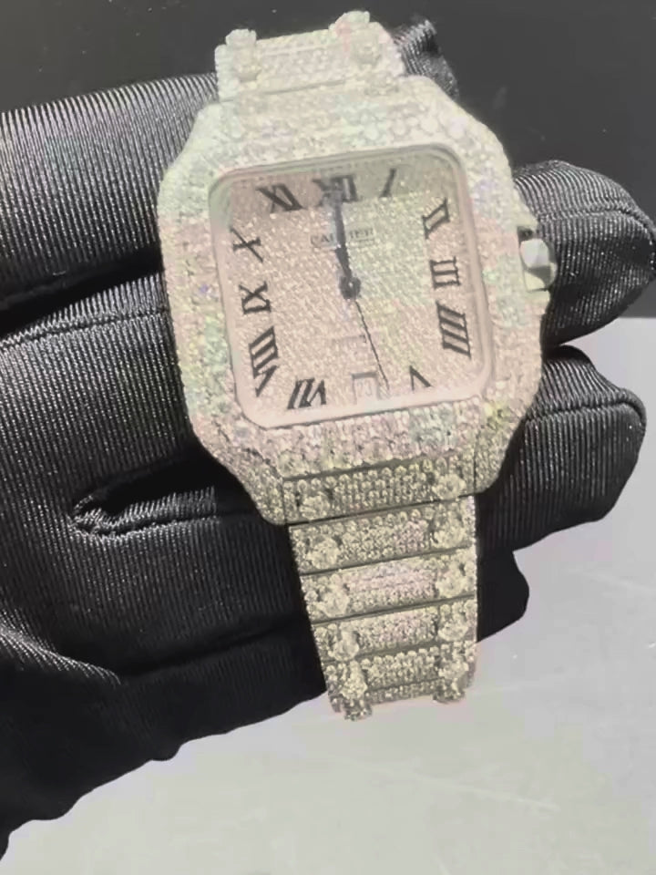Each moissanite stone in our watches is hand set by our own team of artisans. Never mass-produced or machine-set using cheap methods.
