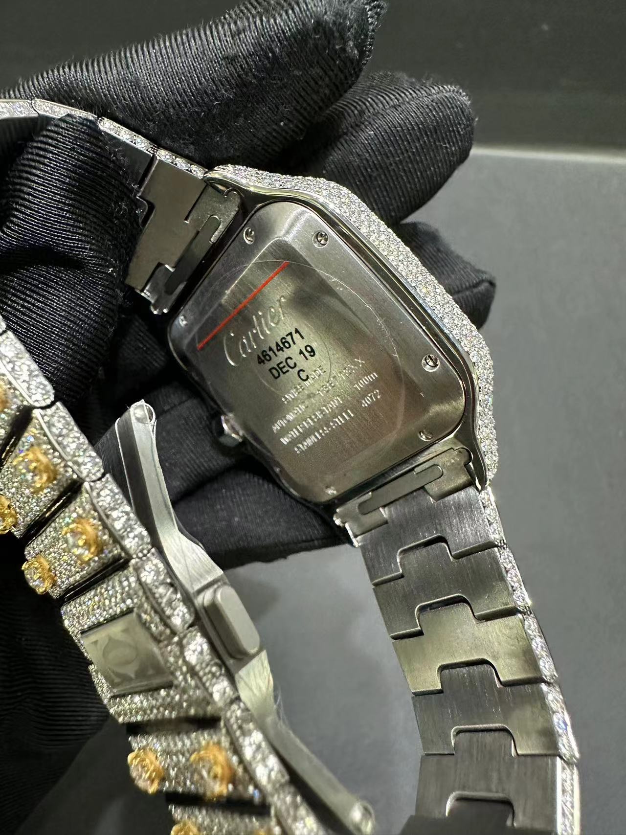Each moissanite stone in our watches is hand set by our own team of artisans. Never mass-produced or machine-set using cheap methods.